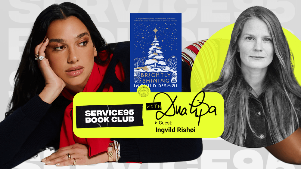 For a deeply moving December edition of the Service95 Book Club, Dua Lipa sits down with Norwegian writer Ingvild Rishøi, whose celebrated novel Brightly Shining follows two young sisters and their loving but alcoholic father as they navigate the fragile hope and quiet heartbreak of the holiday season. A contemporary reimagining of Hans Christian Andersen’s The Little Match Girl, the book blends social realism with a touch of magic, offering both tenderness and emotional truth.