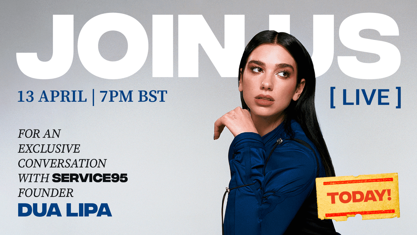 Join Service95 founder Dua Lipa live for a one-off digital event – today, Thursday 13 April at 7PM BST. She will exclusively discuss the inside story of the brand – her inspirations, her experience of establishing herself as an entrepreneur and a behind-the-scenes glimpse into the workings of Service95. Plus, you’ll get a sneak peek of some exciting new projects coming soon! Attendees will also get the chance to have their Service95-related questions answered by Dua. It’s not to be missed.