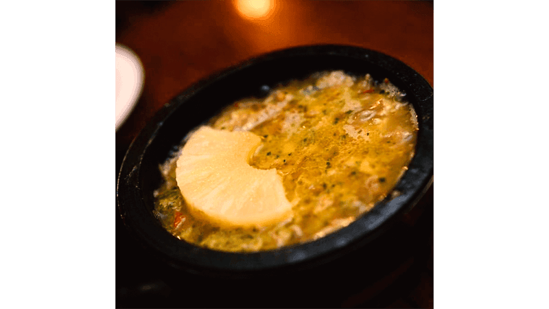“This is a staple Yemeni dish called Fahsa – a lamb stew that we also serve at our restaurant,” she says. “It’s the best seller here.” Muna’s top tip for the dish is to: “top with a slice of pineapple. [This will] add some boldness to the flavours, and an unexpected yet delightful twist.”