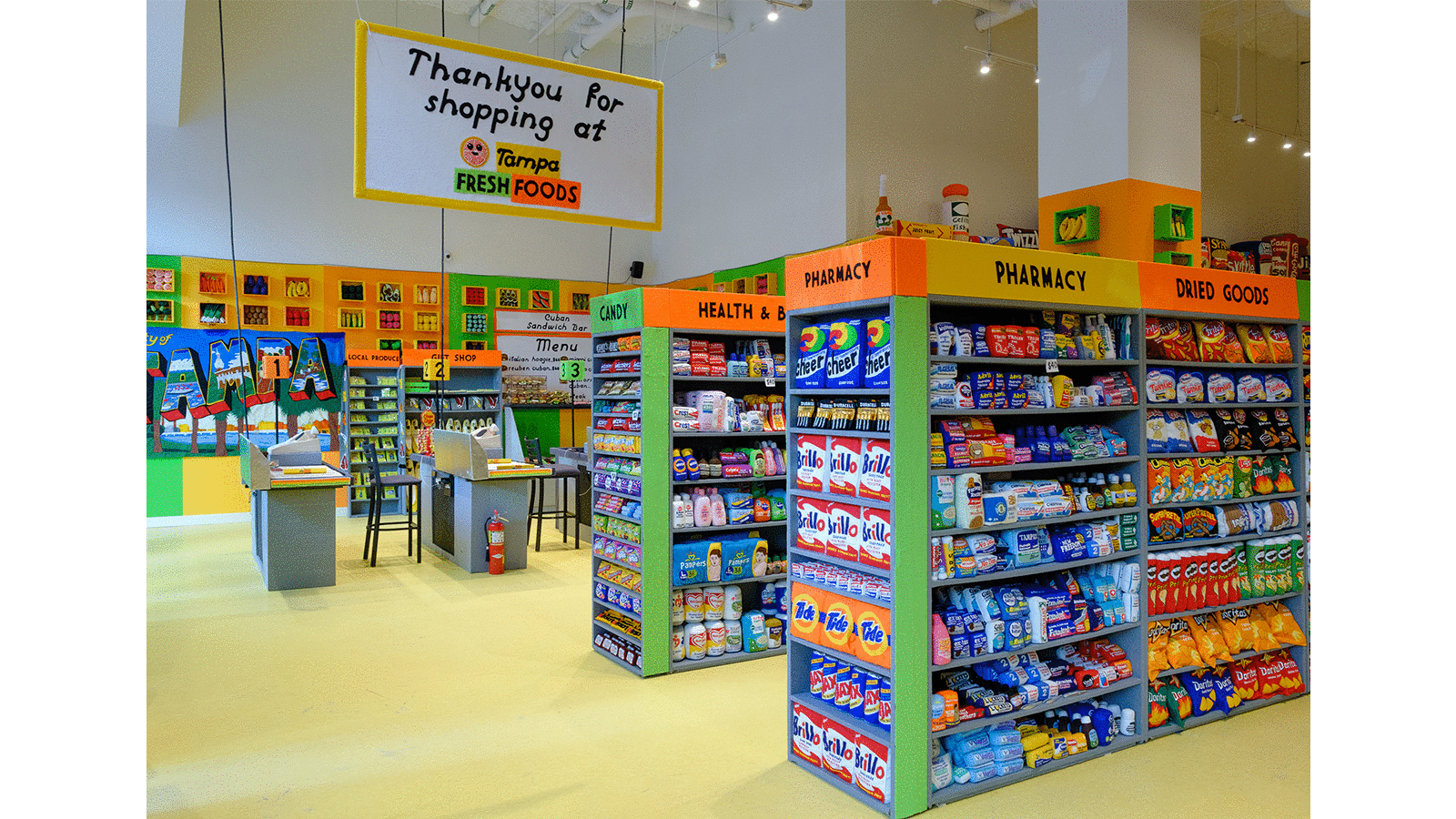 Everyone could do with a “happiness injection,” she says, and the ubiquity of a grocery store draws on familiarity and nostalgia. “It’s for everyone; it’s appealing to all ages, backgrounds, genders, just come have a look and have fun.”