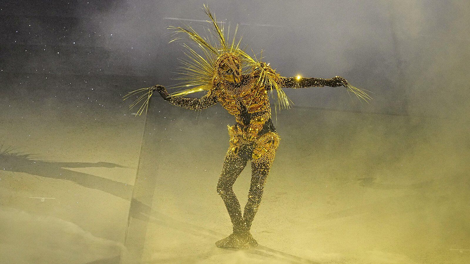 As the ‘Golden Voyager’, his movements, characterised by fluidity and precision, were designed to embody the themes of exploration and human potential that are central to the Olympic Games. The performance represented a journey of discovery, with Cadre transitioning through various stage environments – from starry skies to golden sands – all enhanced by an immersive display of lights that enveloped the entire arena.