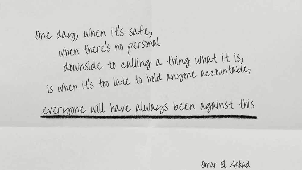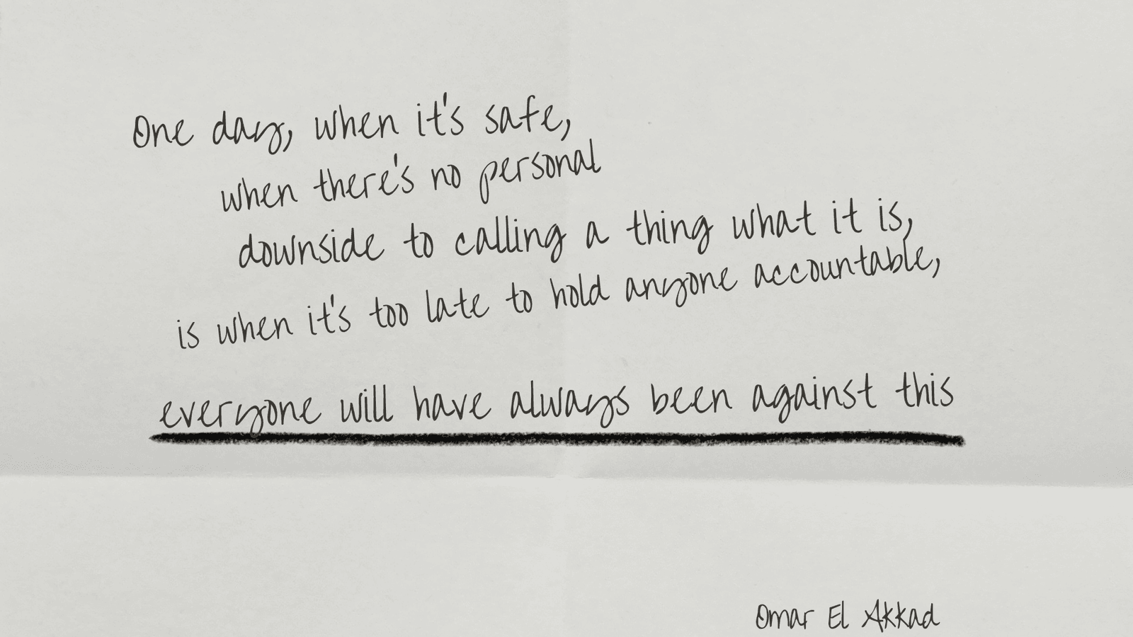Contrary to popular assumption, Omar El Akkad did not turn his viral 2023 tweet about the destruction of Gaza into a book. Though the resonant critique would be chosen as a title, One Day, Everyone Will Have Always Been Against This is a book the author had felt inside of him for a while. Throughout the book, Omar examines the contradictions of Western liberalism and media complicity during humanitarian crises, critiquing how political violence is justified through shifting historical narratives and how systems of power preserve themselves at the expense of justice and human dignity.