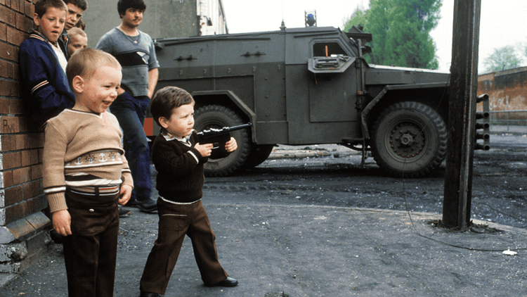I remember a time before ‘The Troubles’. I know I know this because I remember it changing in the late 1960s and the early ’70s, and because new words entered the lexicon of the ordinary. ‘Mammy, how’d you spell, helicopter?’ There were other words too: soldier, squaddie, internment, sangars, grenade, Saracen, riots, barricades, and balaclavas. There were also plenty of ‘fuckin’ bastards’ at ‘fuckin’ checkpoints’ all of a sudden. There were new words like assault rifles, sawn-off shotguns, machine guns, grenades, Armalites, gelignite, Molotov cocktails. Later, Semtex, missiles and Kalashnikovs.