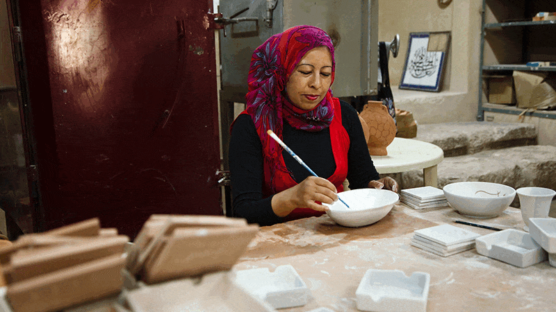 “We’re barely making any profits,” she says. “And what [money] we do have is spent on this place and invested in training the young women.” Unemployment in Jordan for women is around 33% in urban areas and is even higher in rural areas and while many of the co-op’s employees are well educated, getting them into the local, largely agrarian workforce has been difficult. This is why the women have had no choice “but to find their own alternative and not even depend on the government to hire them,” says Al Husami. The co-op, however, isn’t just a job in a restaurant for its 15 employees. The local women there are trained to weave fabrics, craft pottery and soap at a fair wage while gaining practical experience and skills. The Jordan Trail (a popular hiking route) running through the area has now also furnished them with a steady stream of tourists, thereby creating unique opportunities for the female would-be entrepreneurs. “That was the idea, to try and support these ladies and encourage them to develop and create their own ideas so that, in the future, they can be independent and own their own businesses,” says Al Husami.